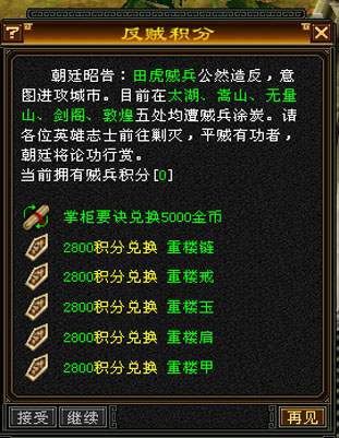 反贼BOSS:元宝1000、金币188、高级宝石合成符、女娲神石、润魂石、龙魂玉 、掌柜要诀